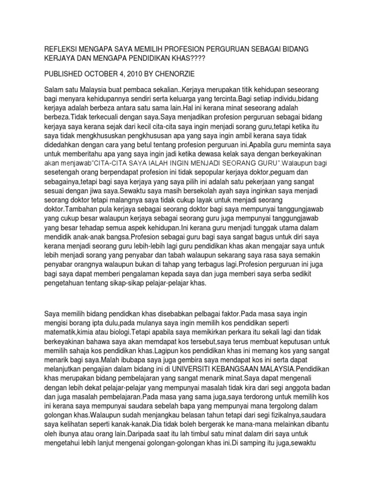 Refleksi Mengapa Saya Memilih Profesion Perguruan Sebagai Bidang Kerjaya Pdf